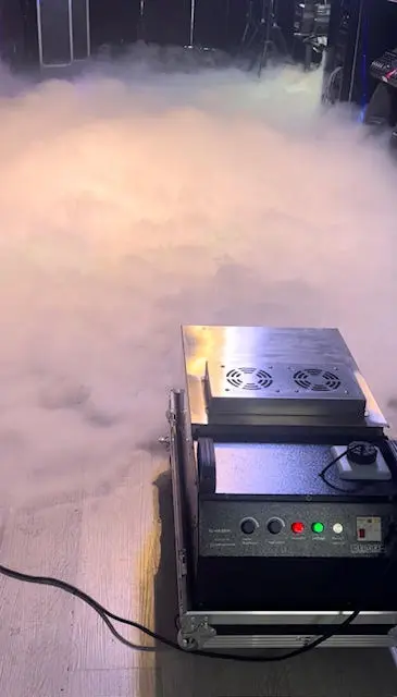 מכונת עשן כבד בהספק 3500W יוצרת ענני עשן עבים ונרחבים בדומה לקרח יבש, ללא הצורך בקרח אמתי. מושלמת לאירועים גדולים, מופעים והפקות שמחפשות אפקט דרמטי עם ניידות קלה.