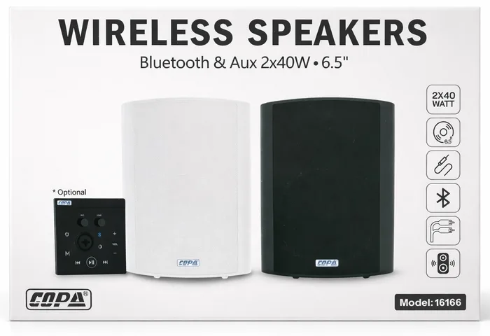 מערכת רמקולים מוגברים איכותית בגודל 6.5 אינץ’ליחידה, עם חיבור Bluetooth ו-AUX, המיועדת לשימוש ביתי ומסחרי כאחד. שילוב של התקנה קלה, צליל חזק ונקי, ושליטה נוחה – לפתרון סאונד מקצועי.